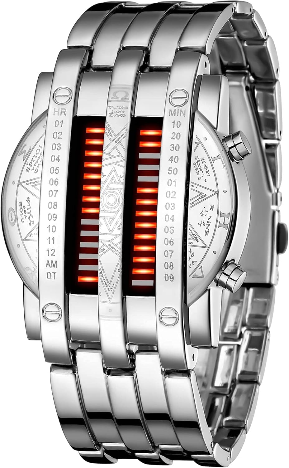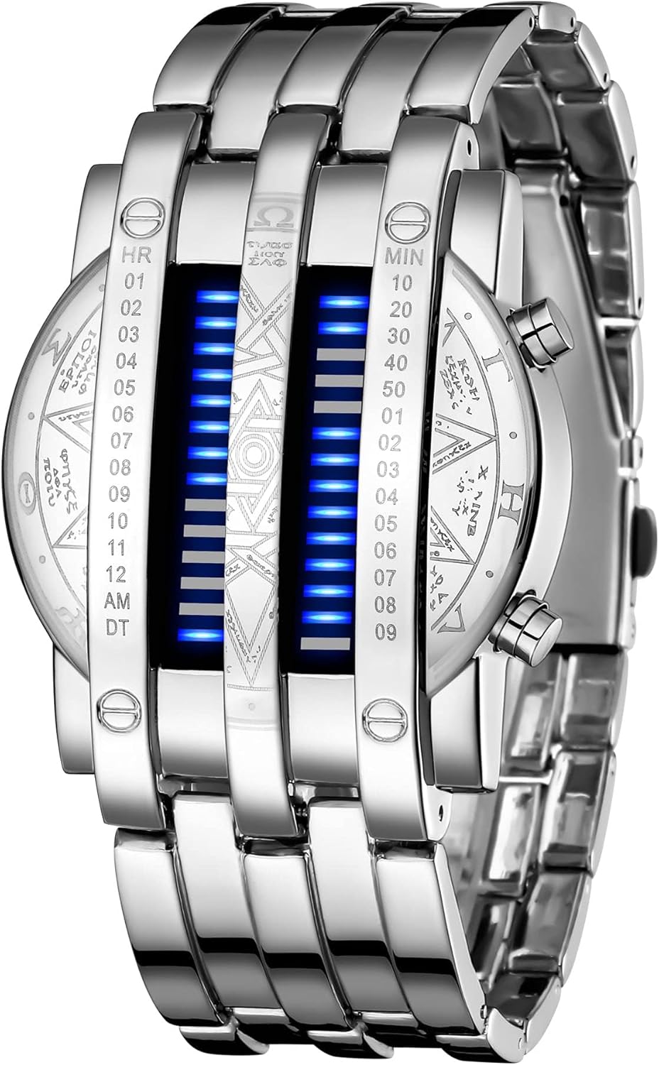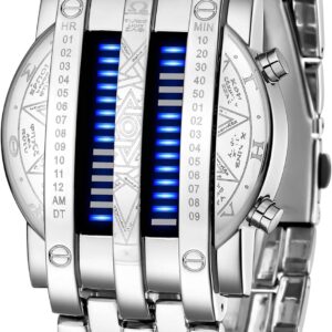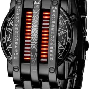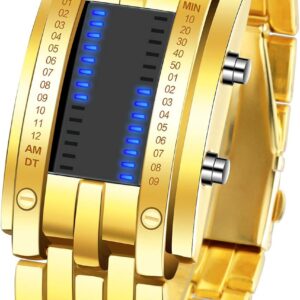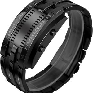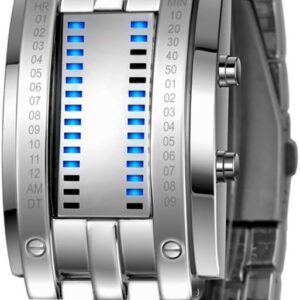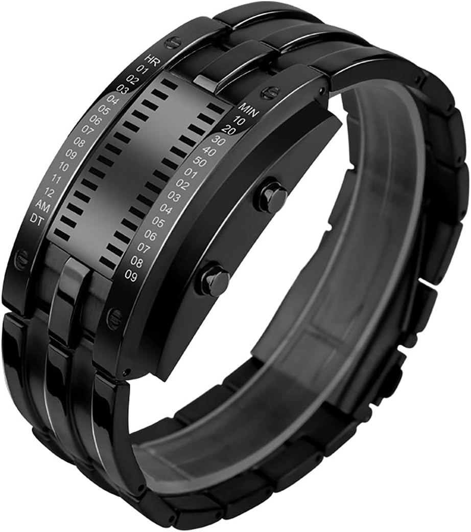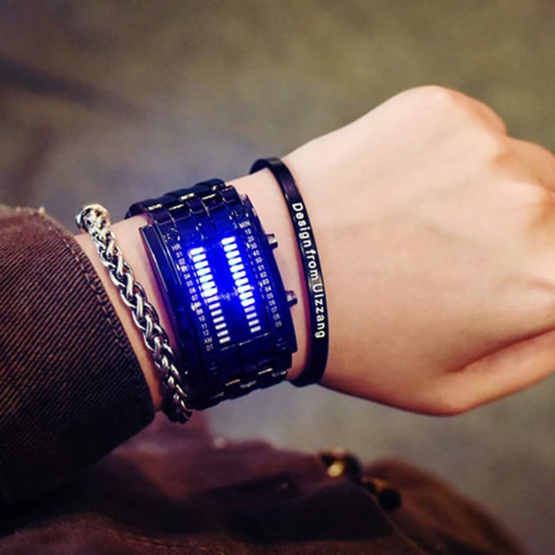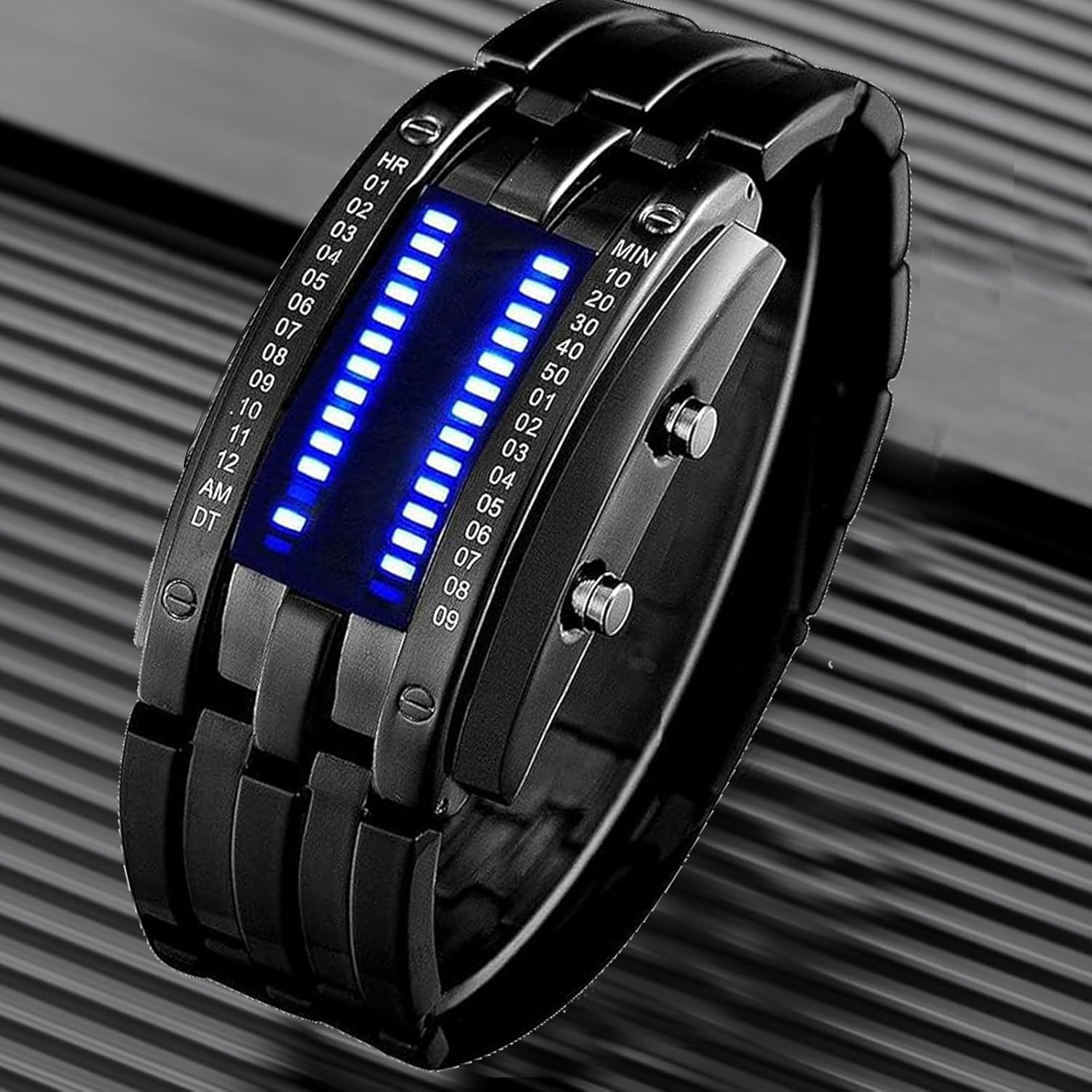 FANMIS Creative Mens Binary Matrix Blue LED Digital Watch Fashion Classic Black Plated Waterproof LED Backlight Bracelet Watches