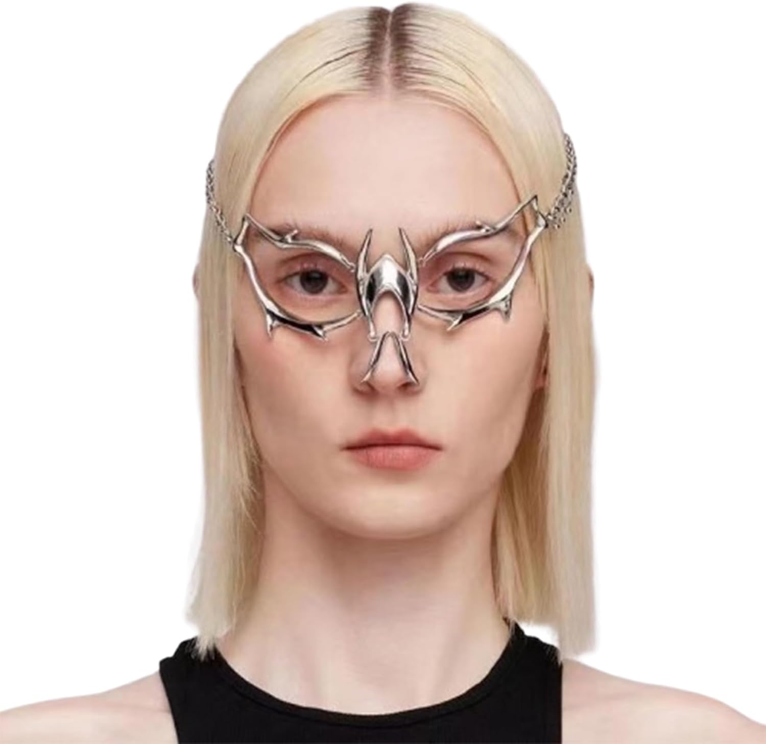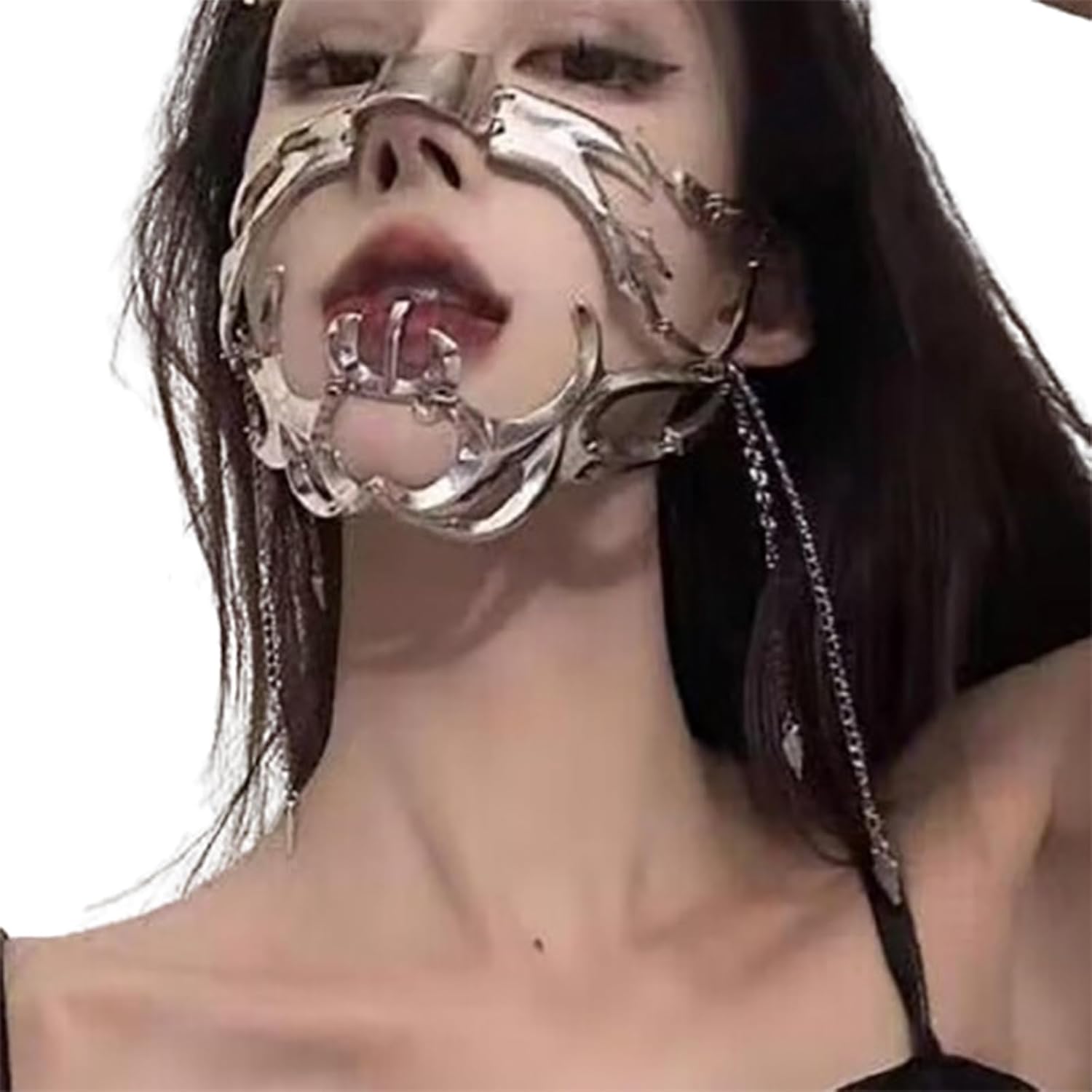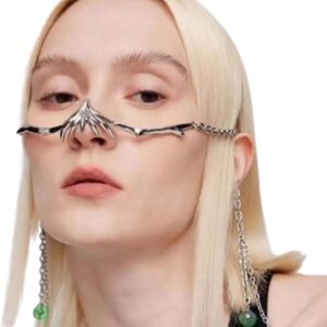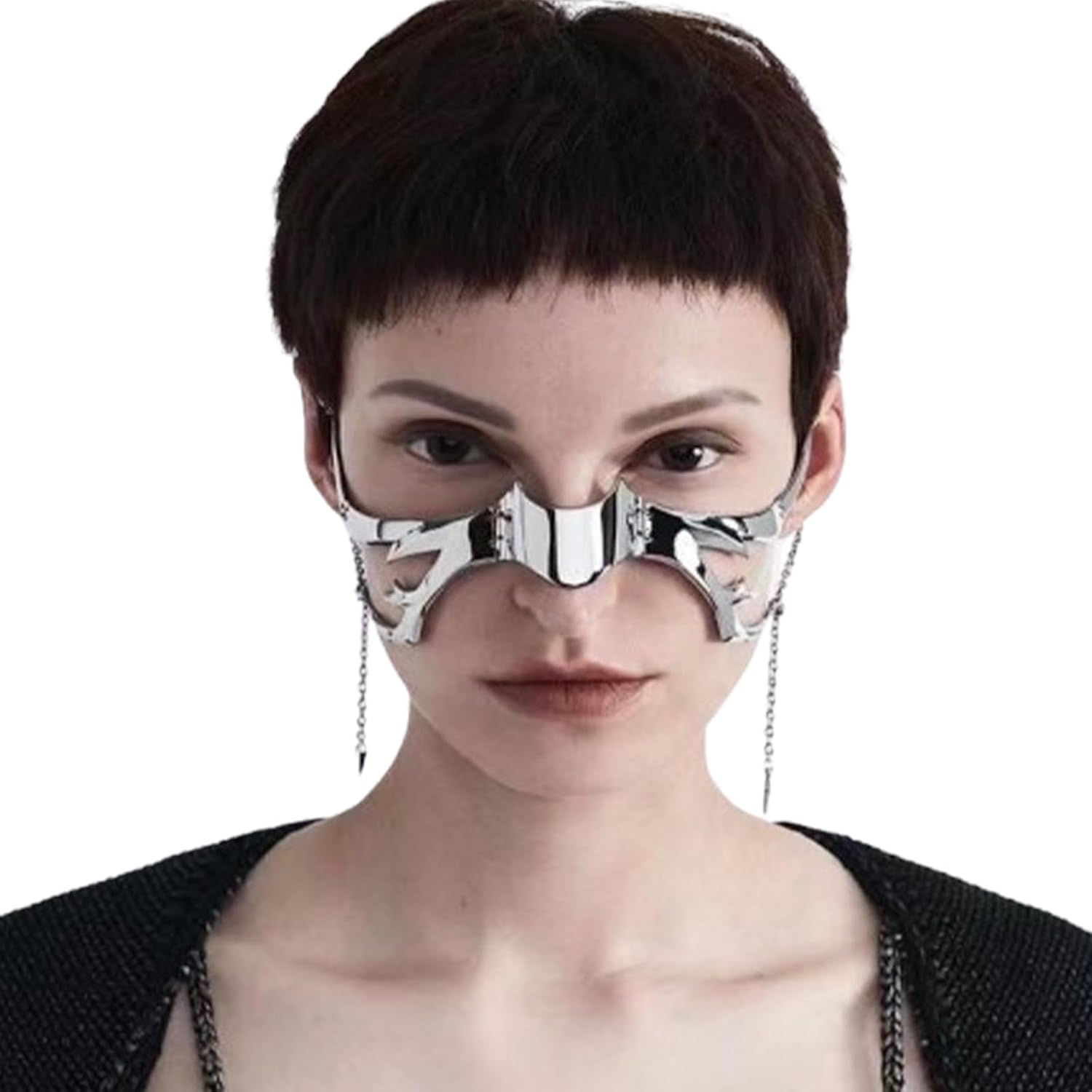 FEHEOO Cyber Punk Alloy Alien Face Accessories Futuristic Cyberpunk Stainless Steel Face Mask with Spiked Chain Accessories