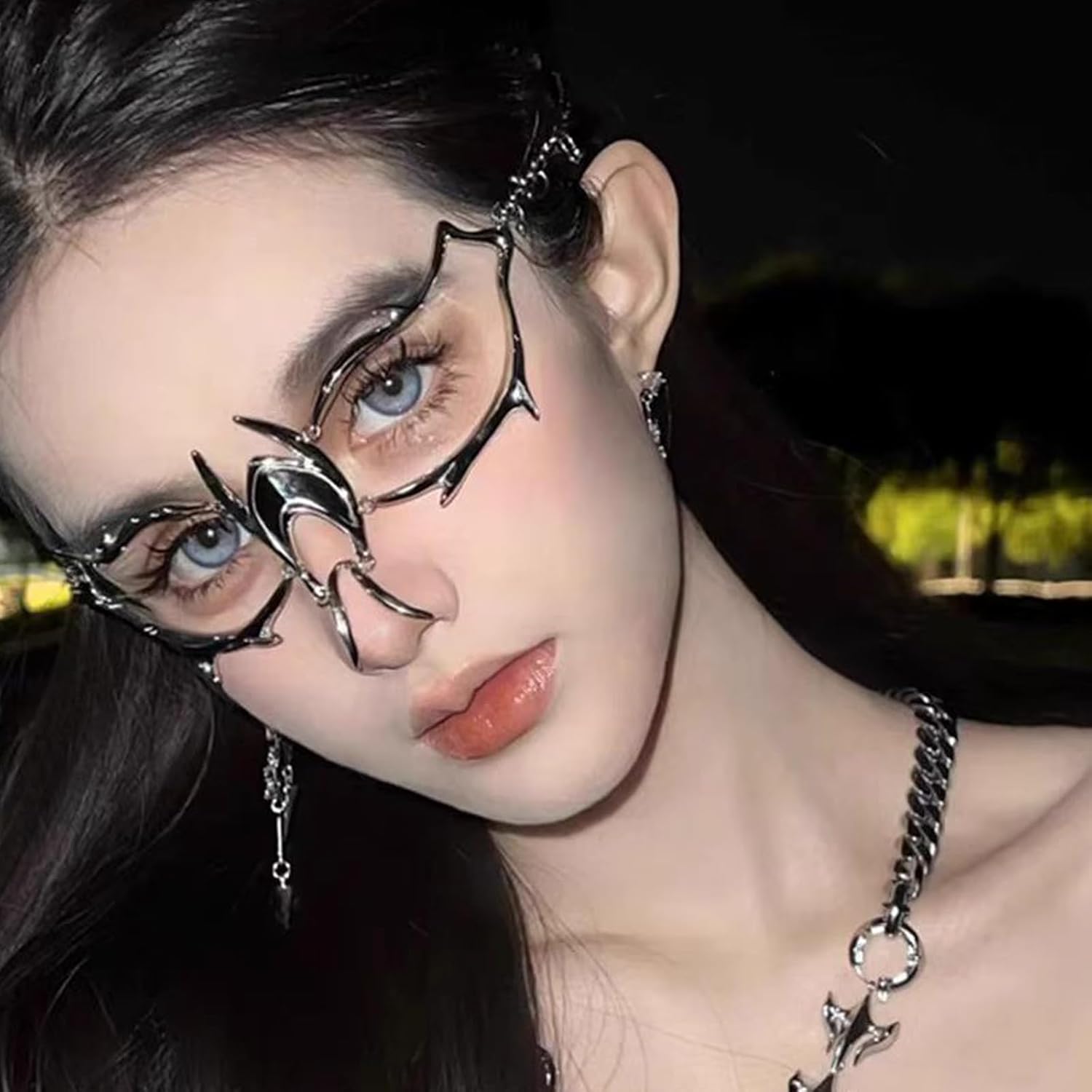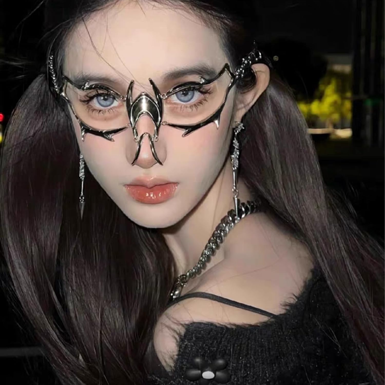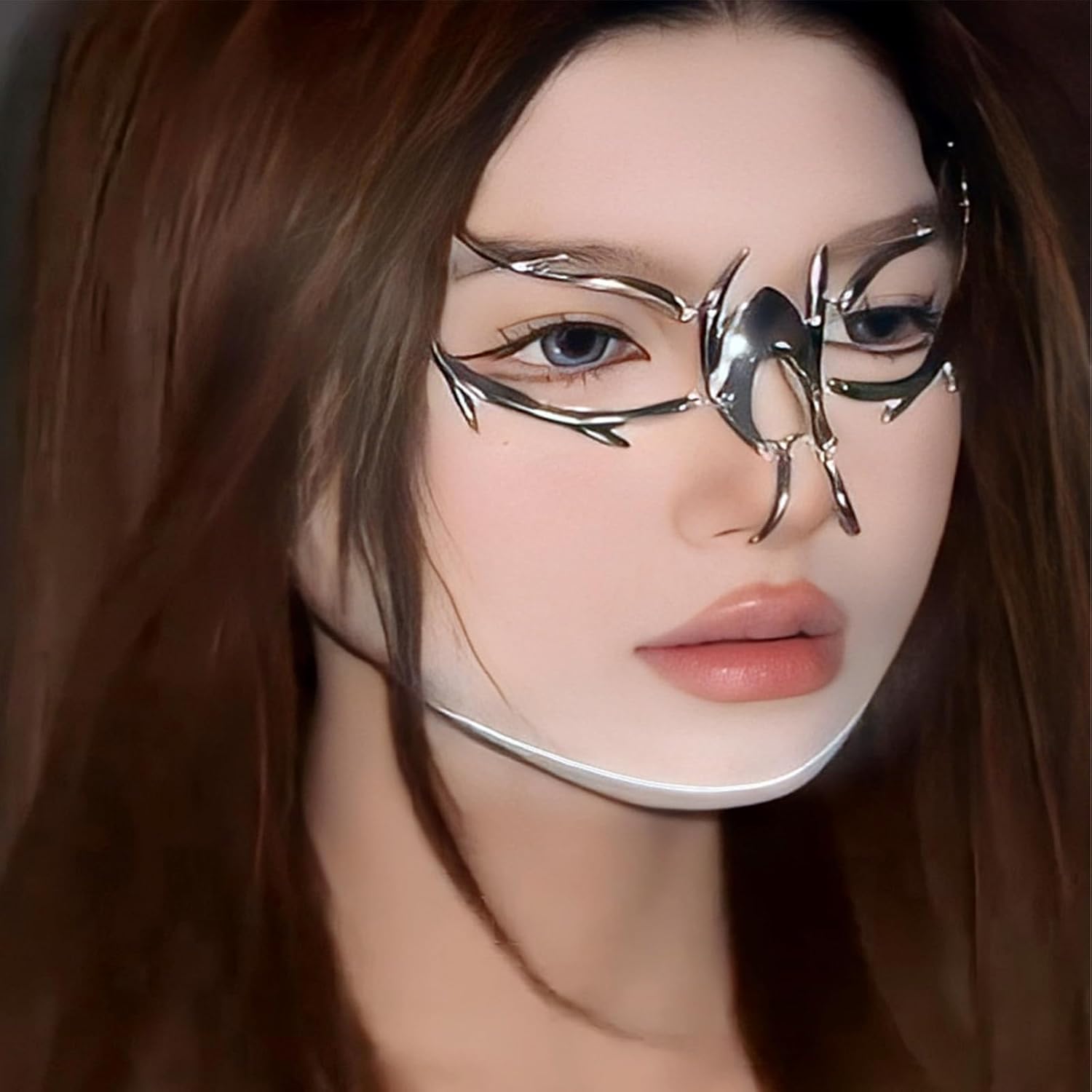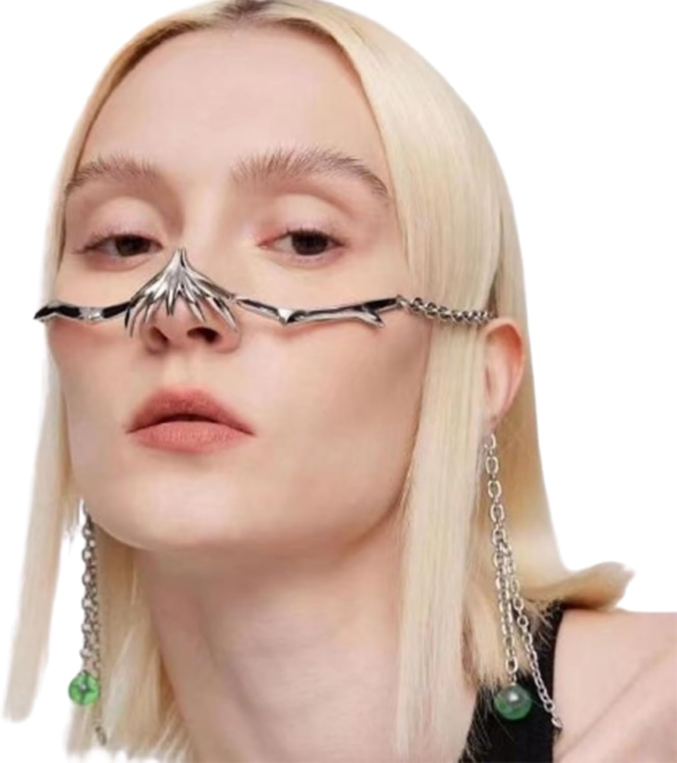FEHEOO Cyber Punk Alloy Alien Face Accessories Futuristic Cyberpunk Stainless Steel Face Mask with Spiked Chain Accessories