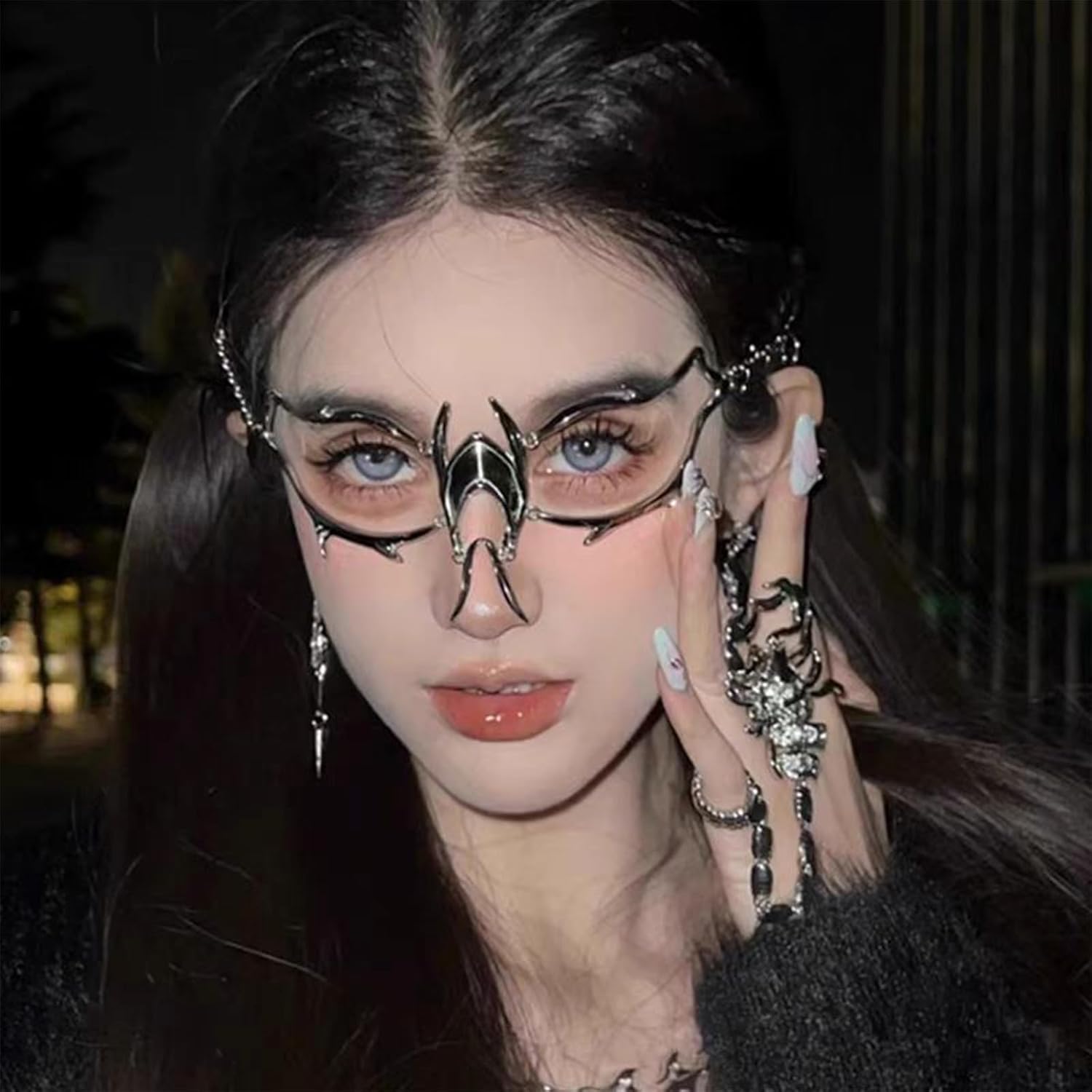 FEHEOO Cyber Punk Alloy Alien Face Accessories Futuristic Cyberpunk Stainless Steel Face Mask with Spiked Chain Accessories quantity