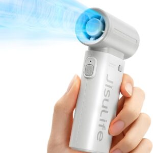 JISULIFE Portable Handheld Fan Life9, Turbo Power High Speed Air [18H Max Cooling Time], 5 Gear Wind, 5000mAh Rechargeable, Mini Pocket Design, Personal Fan for Travel Concerts Camping Makeup – Black