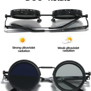 JOLLYNOVA Adjustable Tint Sunglasses, 1-9 Gears Steampunk Retro Metal Round Polarized Glasses with ND Filter Lenses
