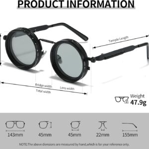 JOLLYNOVA Adjustable Tint Sunglasses, 1-9 Gears Steampunk Retro Metal Round Polarized Glasses with ND Filter Lenses