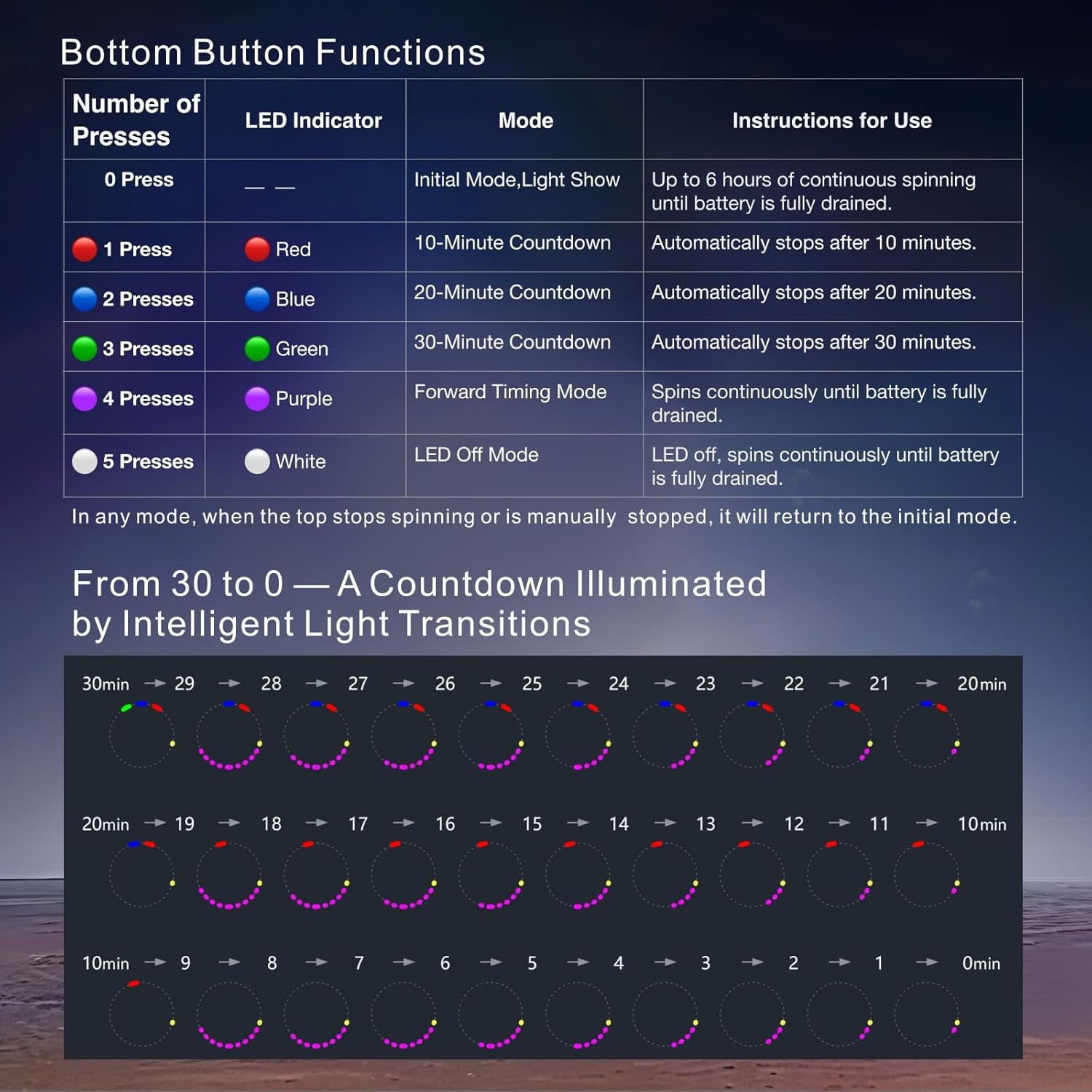Crafted with a glowing light on its surface, the top comes alive as it spins—shifting through red, green, and blue hues. These vibrant colors morph into mesmerizing shapes, mirroring the ever-changing beauty of life itself.