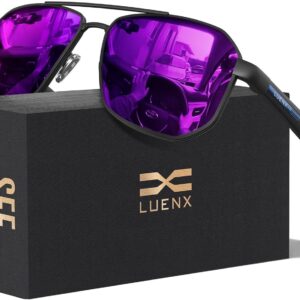 LUENX Aviator Sunglasses for Men Square Polarized Polygon Lens – UV 400 Protection with Accessories 61MM Driving Outdoor