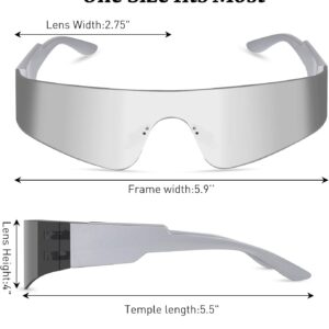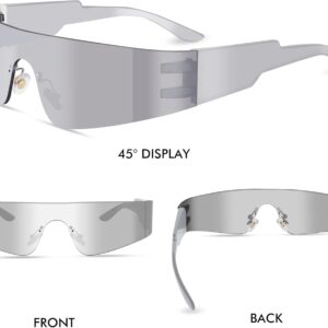 milramtob Futuristic Wrap Around Fashion Sunglasses Y2K Silver Trendy Rimless Glasses Cyberpunk Eyewear Women Men Rave Party